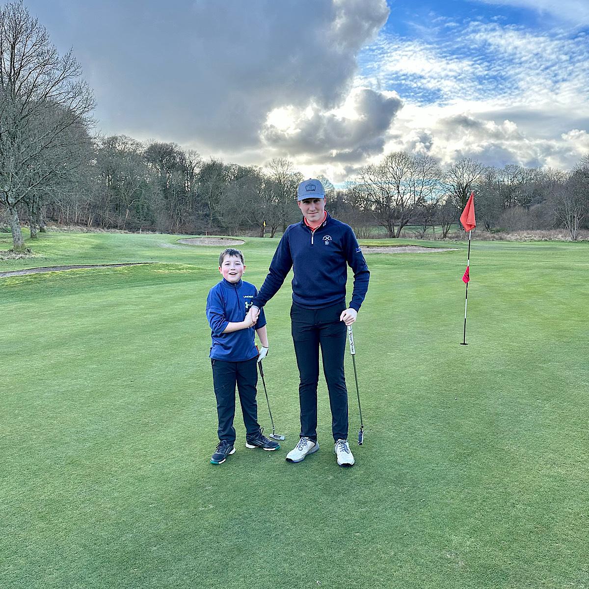 A good practice round for Ethan playing for Fereneze Golf Club at the Home Nations competition at Cheshire. Blue skies overhead, but muddy underfoot.