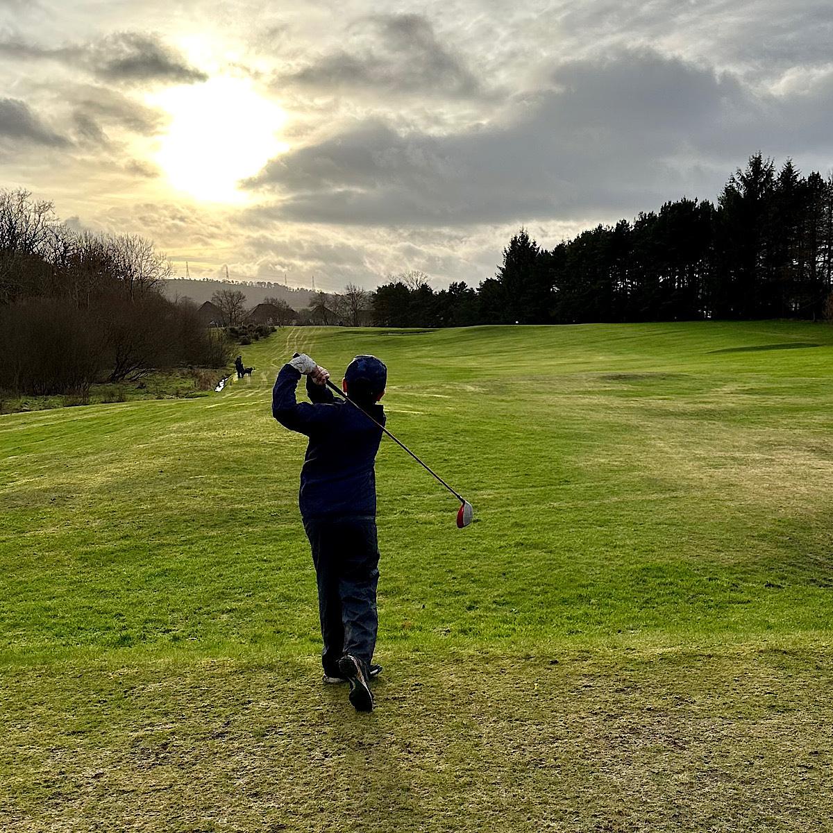 Out on the course with Drew this afternoon. He played great today with a par on the 8th. A great afternoon.