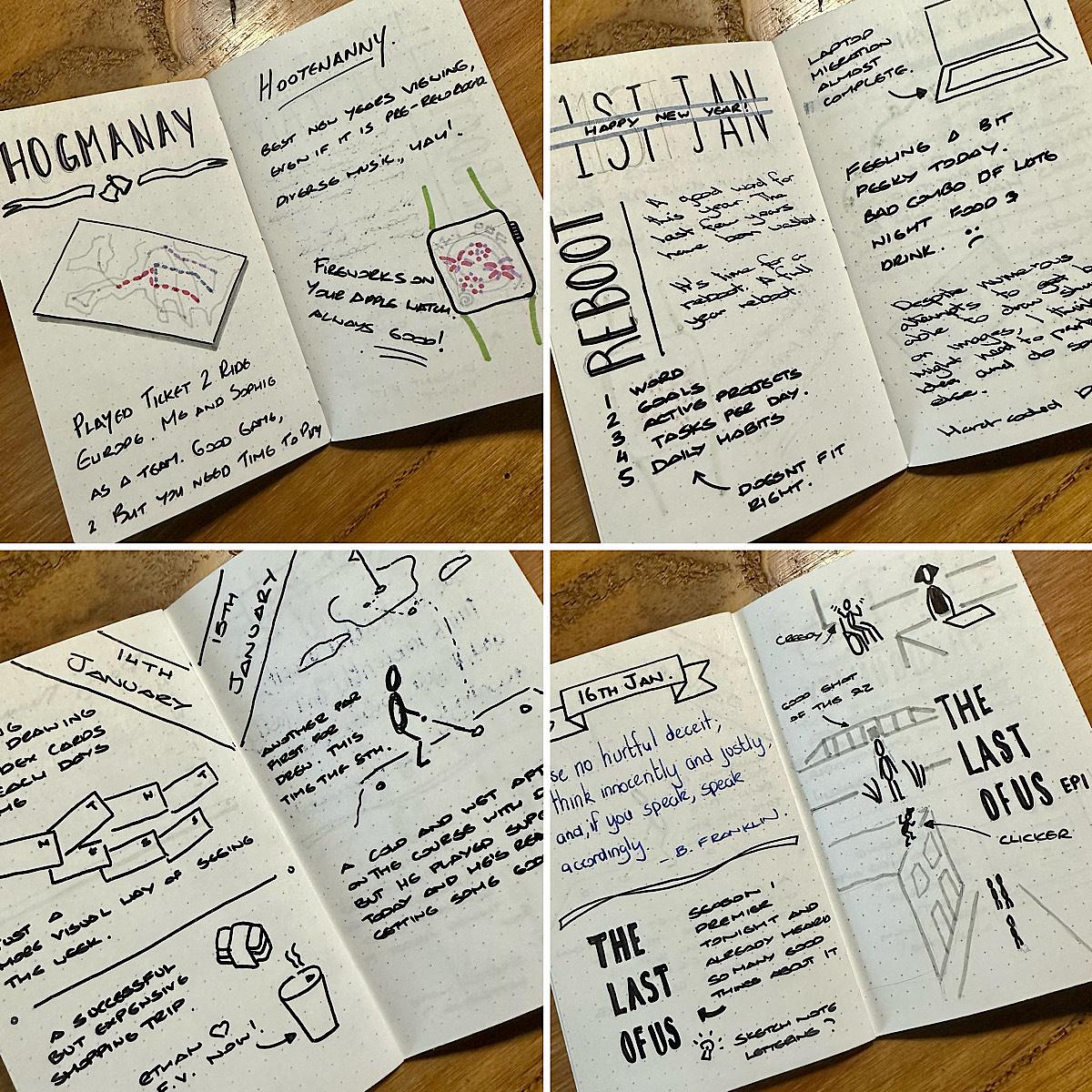 Minilog 15 complete. Using a two-page spread for the weekends condenses how many pages I need for a month. This month’s almost fitted in a single notebook.